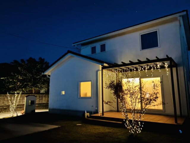 玄関まわりや植栽のライトも帰ってきた家族を迎えてくれる暖かさが素敵ですよね。
