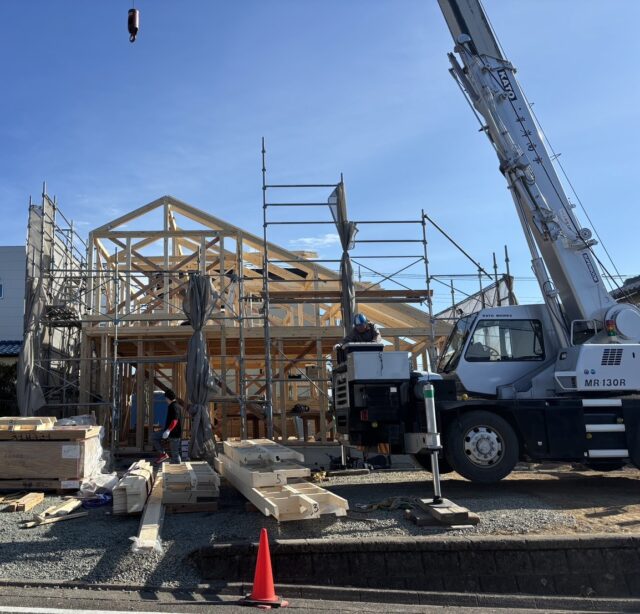 当日は大工さんたちが総力をあげ、息の合った作業で1日で棟上げまで進めることができました。