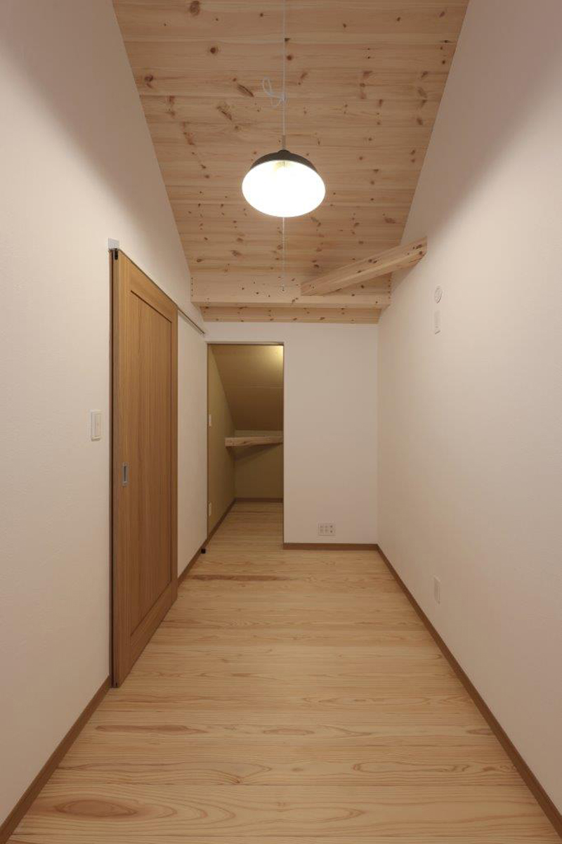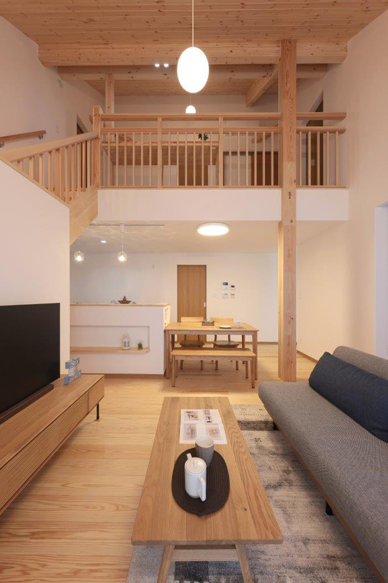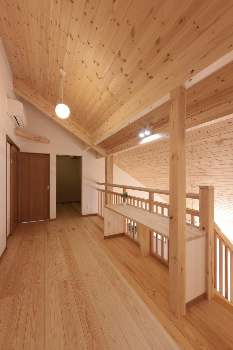 通りの激しい県道沿いの敷地であるが防犯面や視線などに配慮し1階に寝室と和室のある家事動線もスムースな住宅