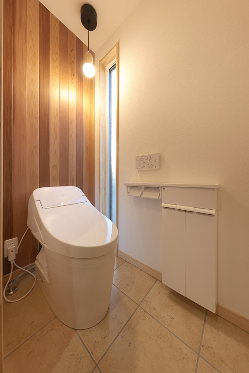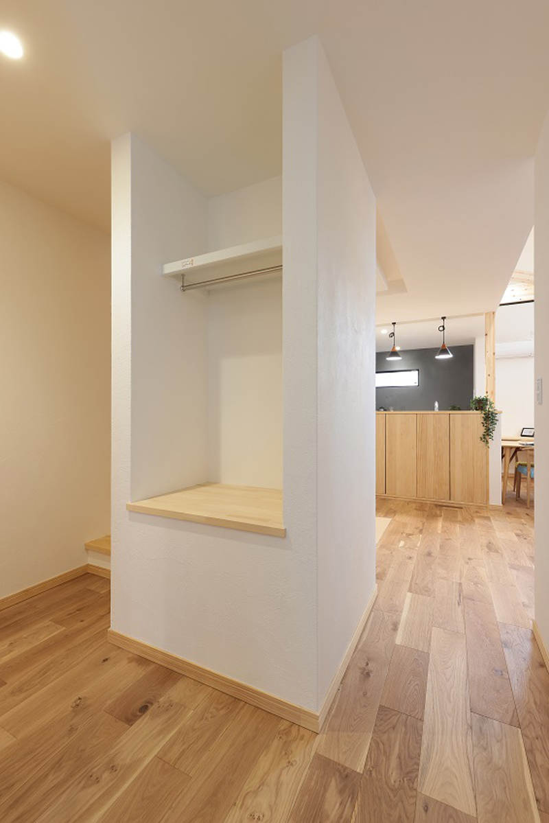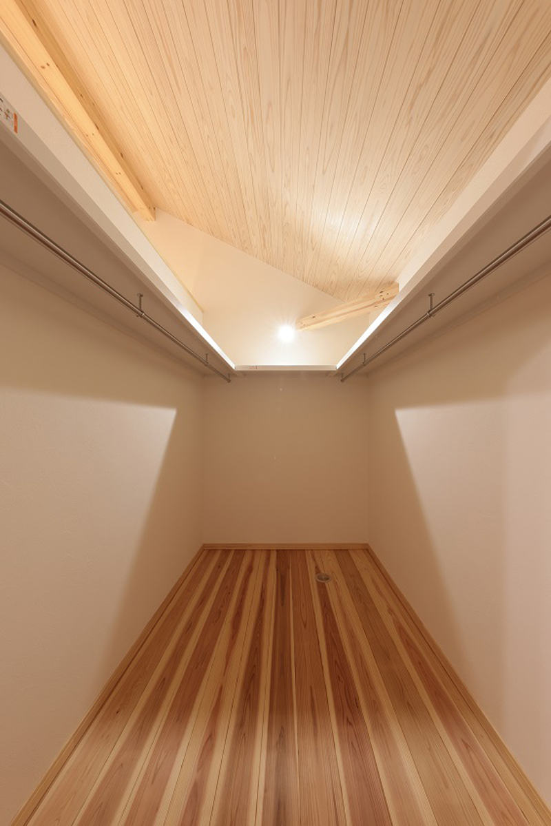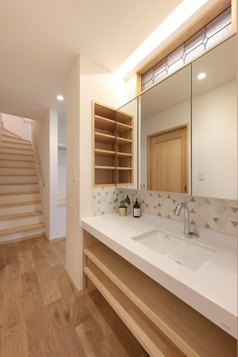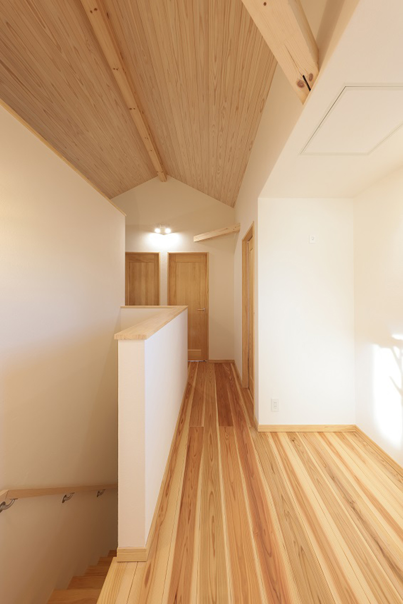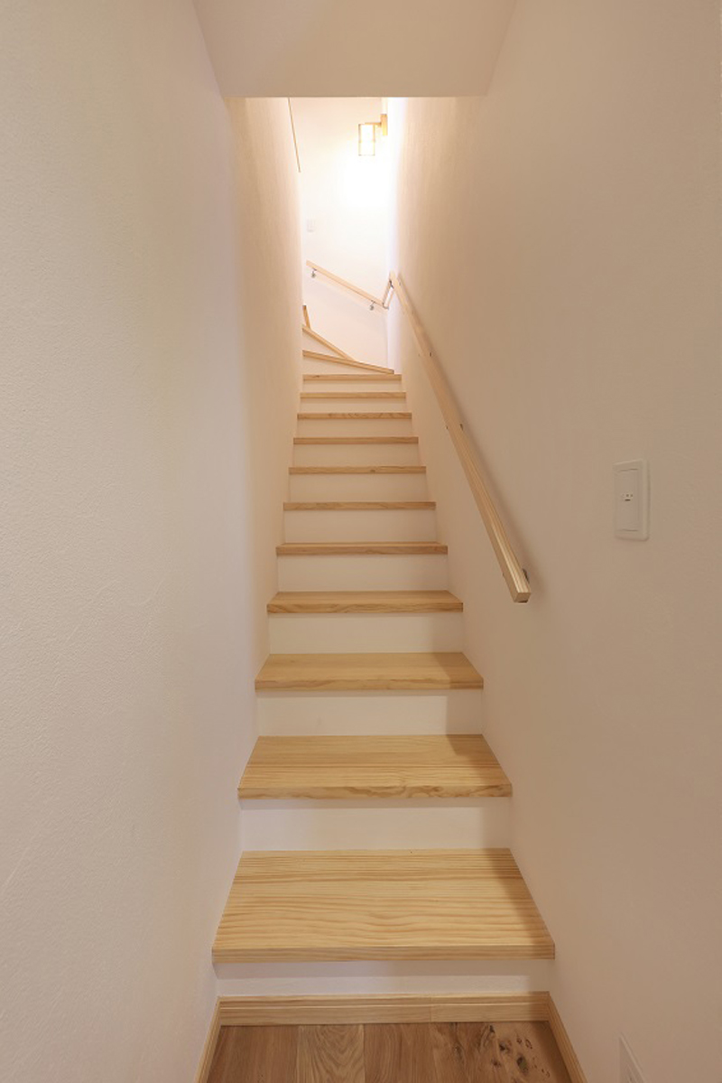 まわりを建物に囲まれて日陰になりやすい住宅地に建つ住宅。高さ制限もあり第一種低層住宅地で建蔽率も厳しい中、うまく光を取り入れ明るい空間とした。