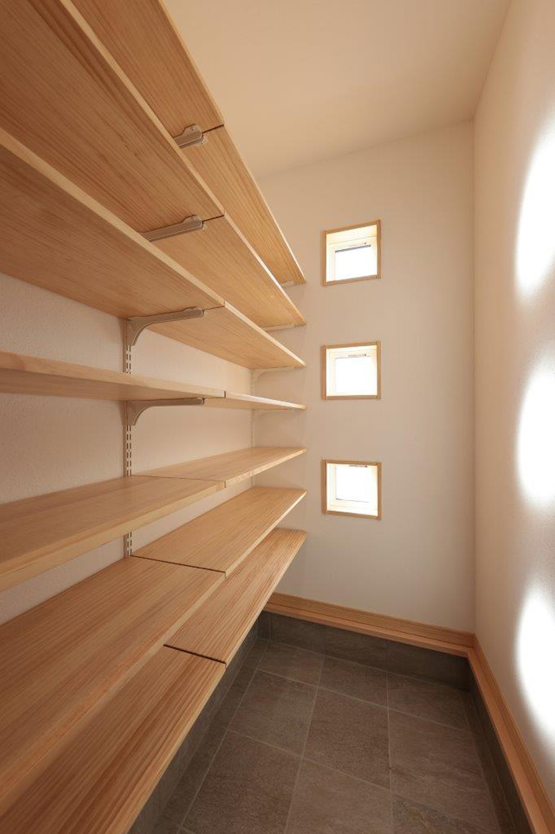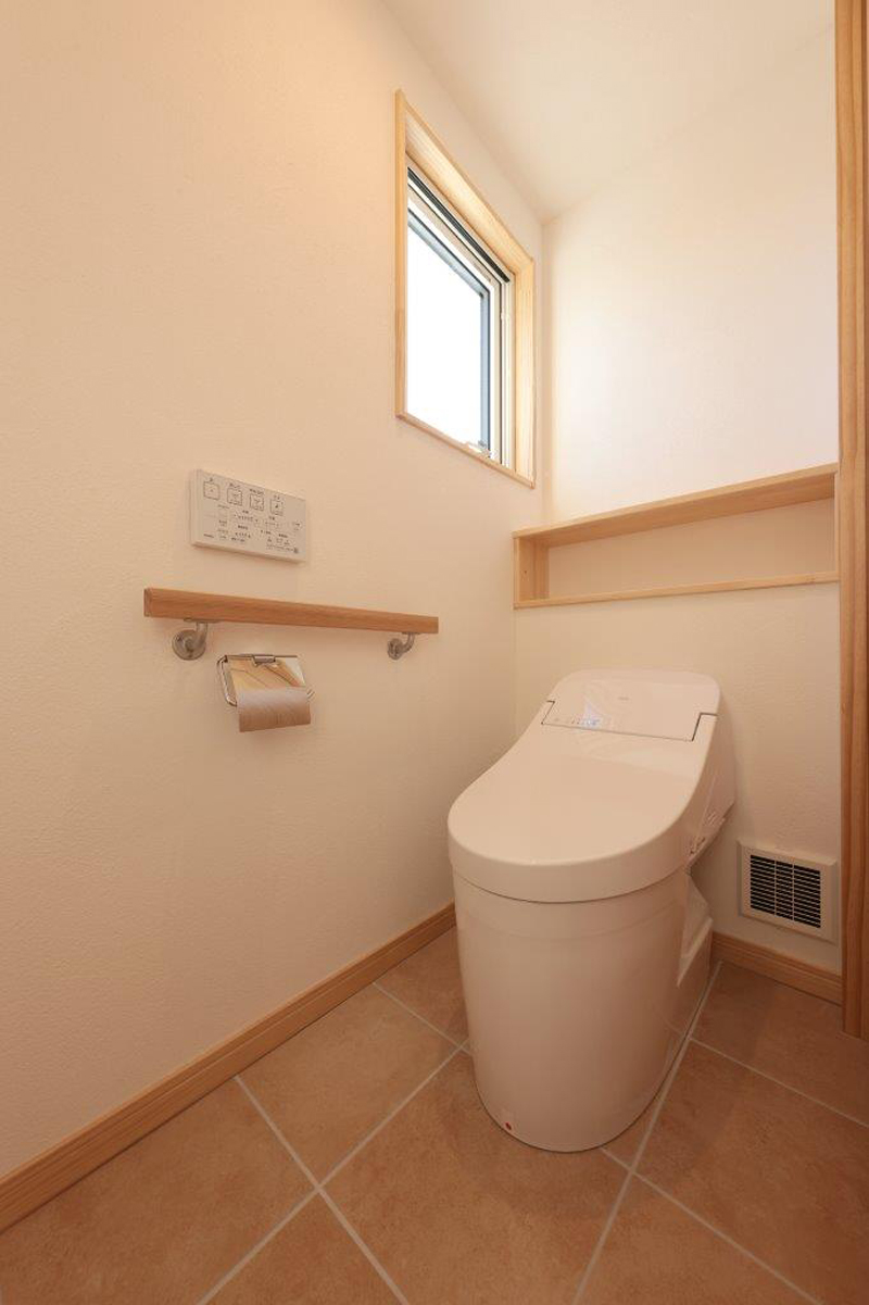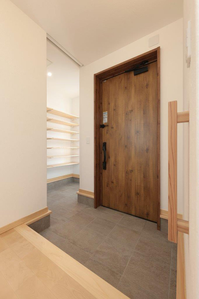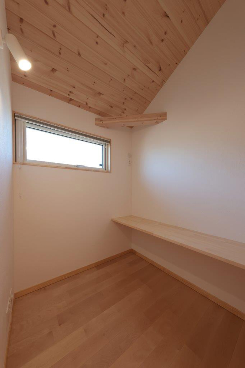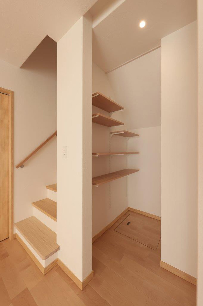 漆喰、無垢材を使用している自然派住宅でありながら、高気密高断熱の機能性住宅を実現しているところを気に入って選んでいただきました。エアコン1台で夏も冬も快適なお家です。寝室を1階に設けた平屋に見える小屋裏2階のお家です。