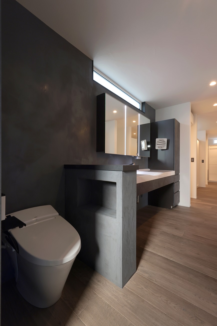 各室の出入り口は建具を無くし壁で視線を調整、建物も生活もシンプルに快適さを追求しました。